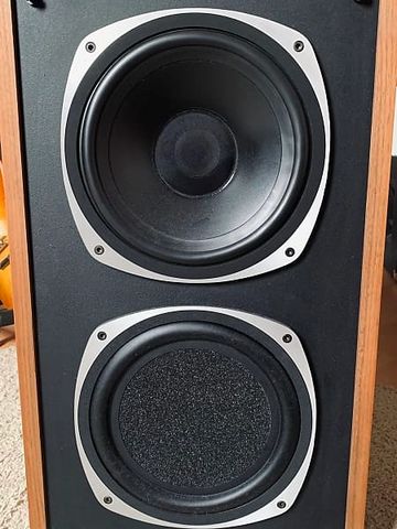 Perfect grills and surrounds. Crossover inductors, capacitors and resistors are in very good condition. Rear bottom corner has nick in the veneer on one speaker. The rest of the speakers have minor scratches, scuffs and light wear for their age.